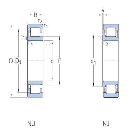 滾動體與套圈擋邊摩擦小,適于高速旋轉(zhuǎn)。根據(jù)套圈有無擋邊,可以分有NU、NJ、NUP、N、NF等單列圓柱滾子軸承,及NNU、NN等雙列圓柱滾子軸承。該軸承是內(nèi)圈、外圈可分離的結(jié)構(gòu)。內(nèi)圈或外圈無擋邊的圓柱滾子軸承,其內(nèi)圈和外圈可以向軸向作相對移動,所以可以作為自由端軸承使用。在內(nèi)圈和外圈的某一側(cè)有雙擋邊,另一側(cè)的套圈有單個擋邊的圓柱滾子軸承,可以承受一定程度的一個方向軸向負(fù)荷。一般使用鋼板沖壓保持架,或銅合金車制實體保持架。但也有一部分使用聚酰胺成形保持架。
